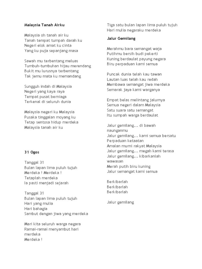 Lirik Lagu Negaraku Dan Sabah Tanah Airku : Tuliskan Senikata Atau Lirik Lagu Negaraku Pdf